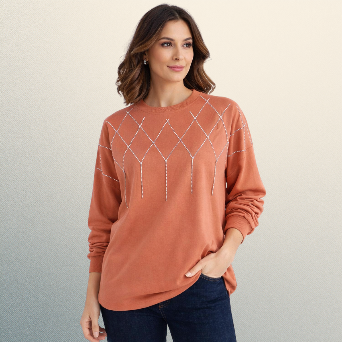 Cuenta con detalles decorativos en pedrería en la parte frontal que aportan brillo y personalidad a la prenda.