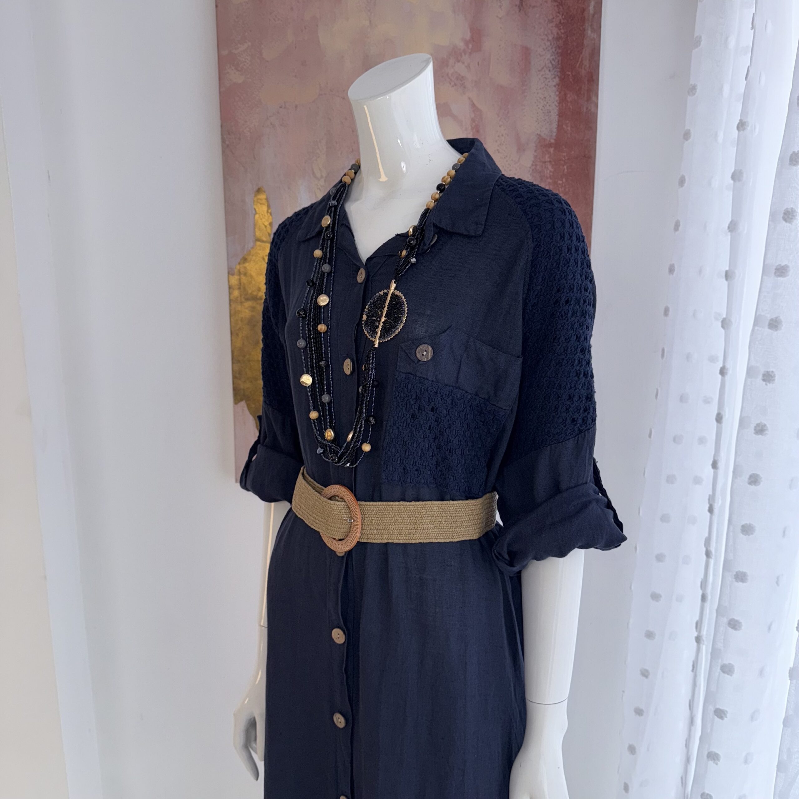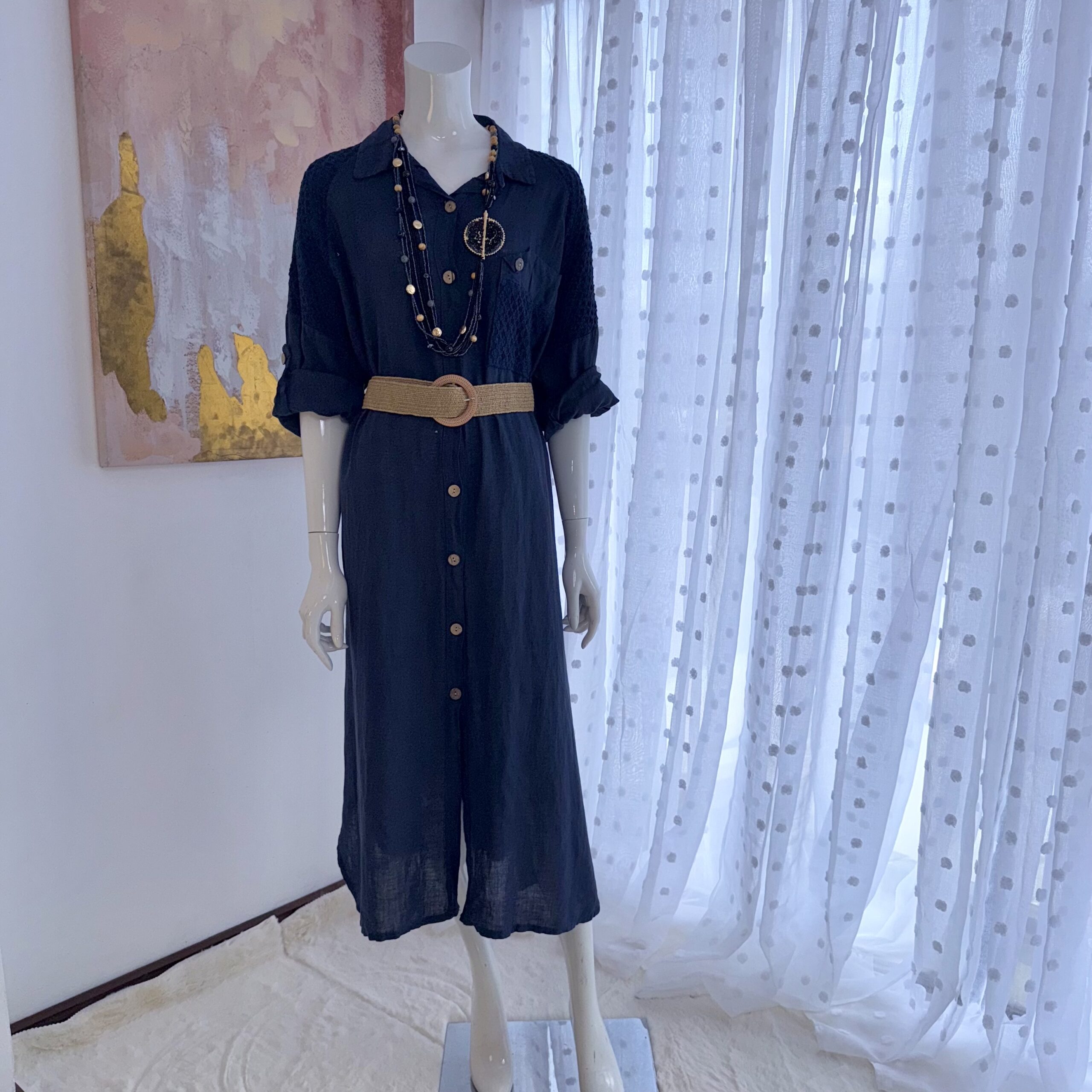 Vestido Camisero de Lino Italiano Premium Azul Profundo – Moda Exclusiva en Costa Rica