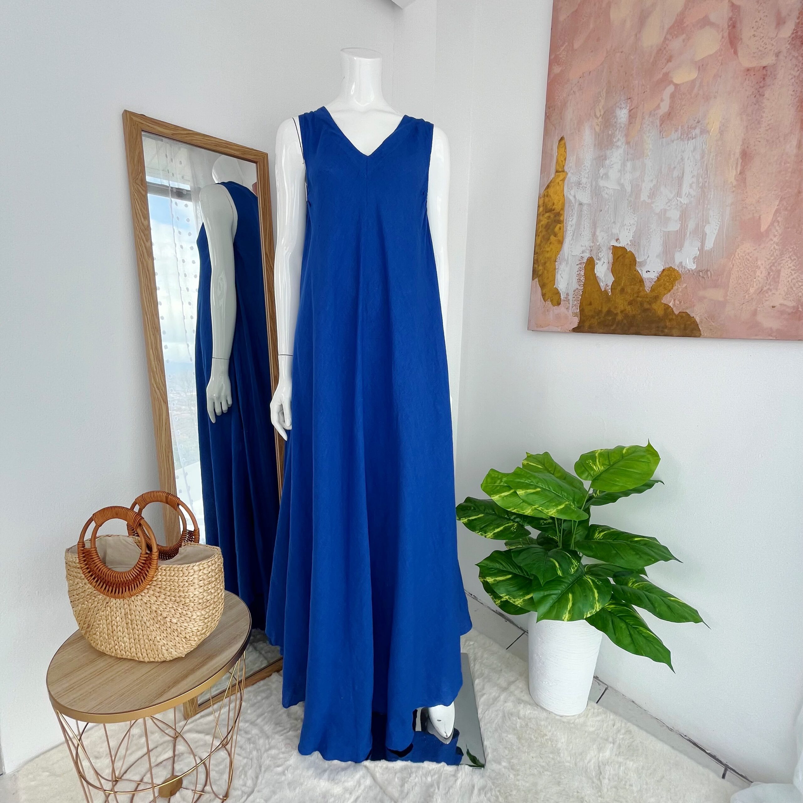 Vestido Largo Azul Rey de Lino Italiano