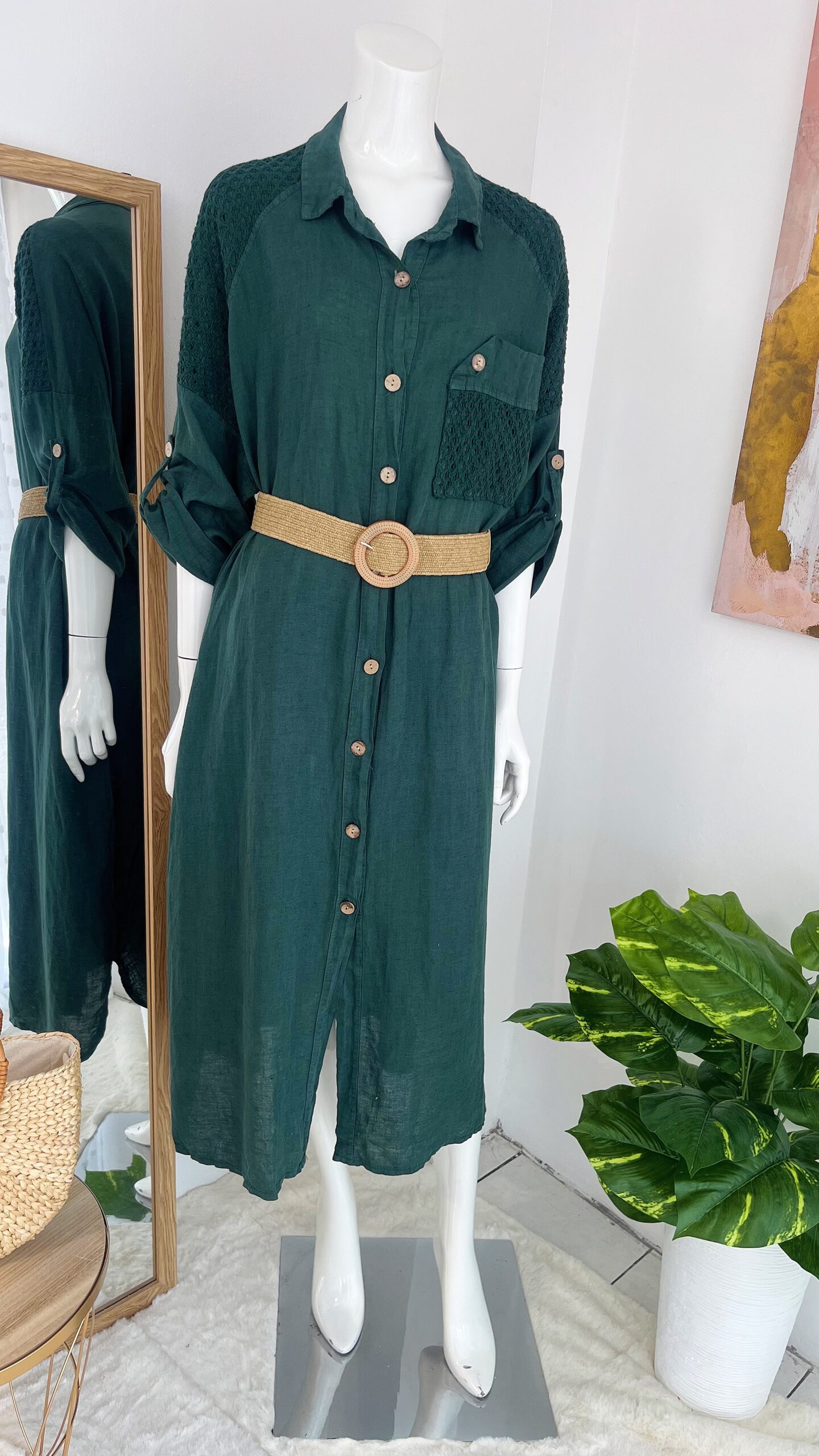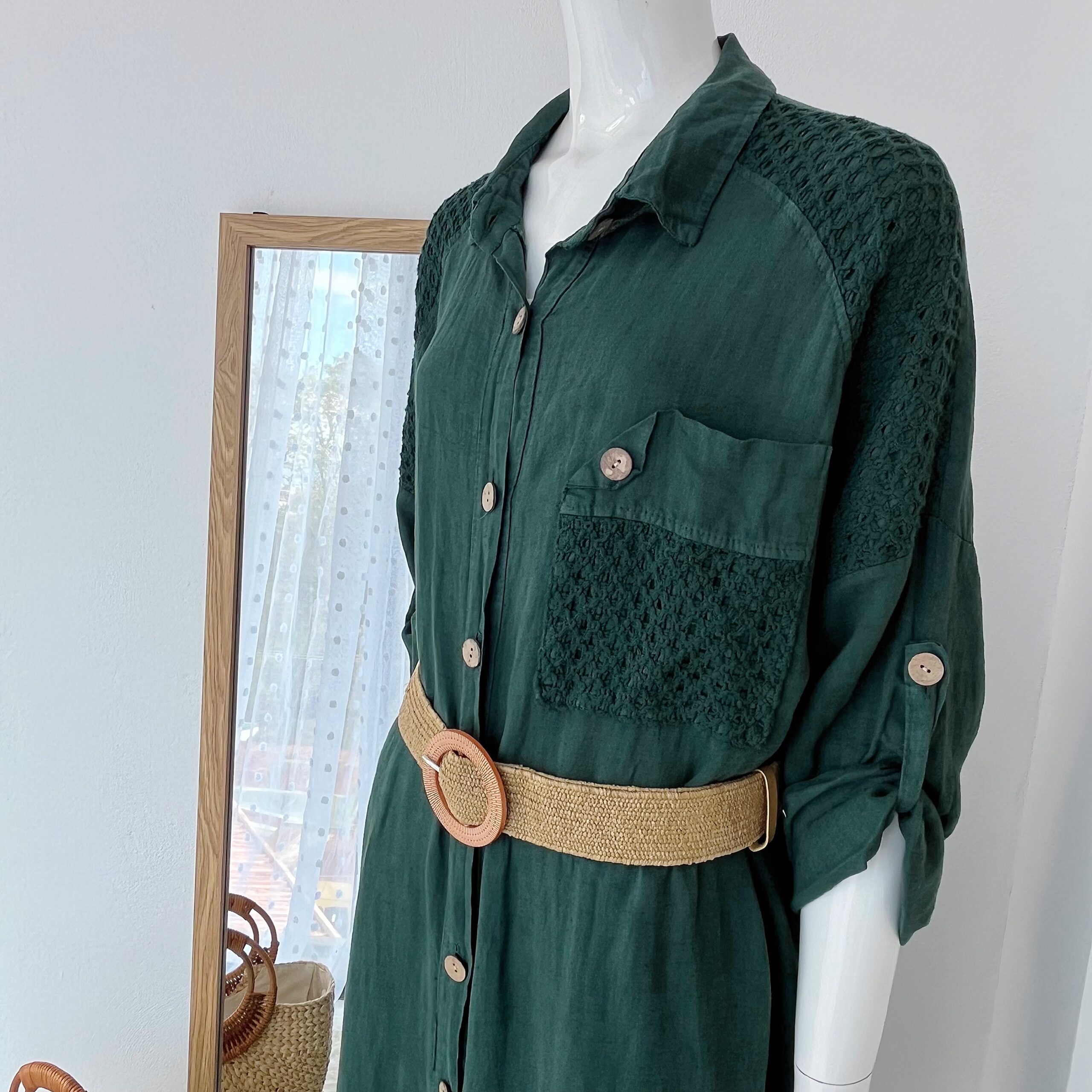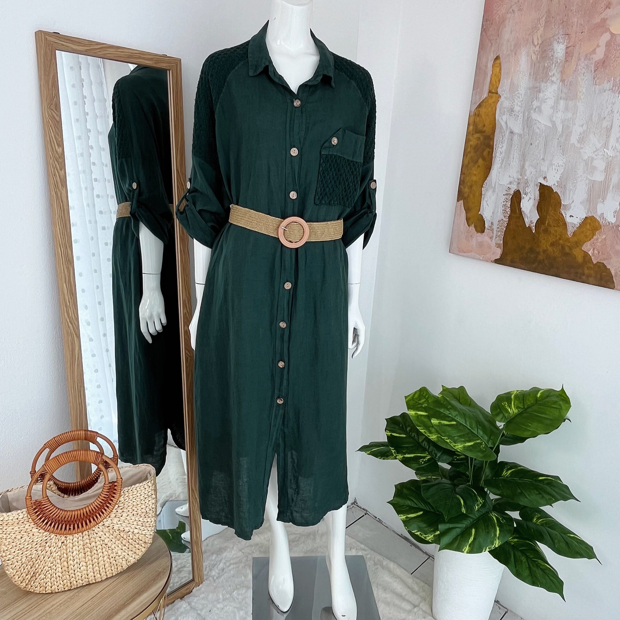 Vestido Verde Camisero de Lino Italiano para Mujer – Moda Elegante en Costa Rica.